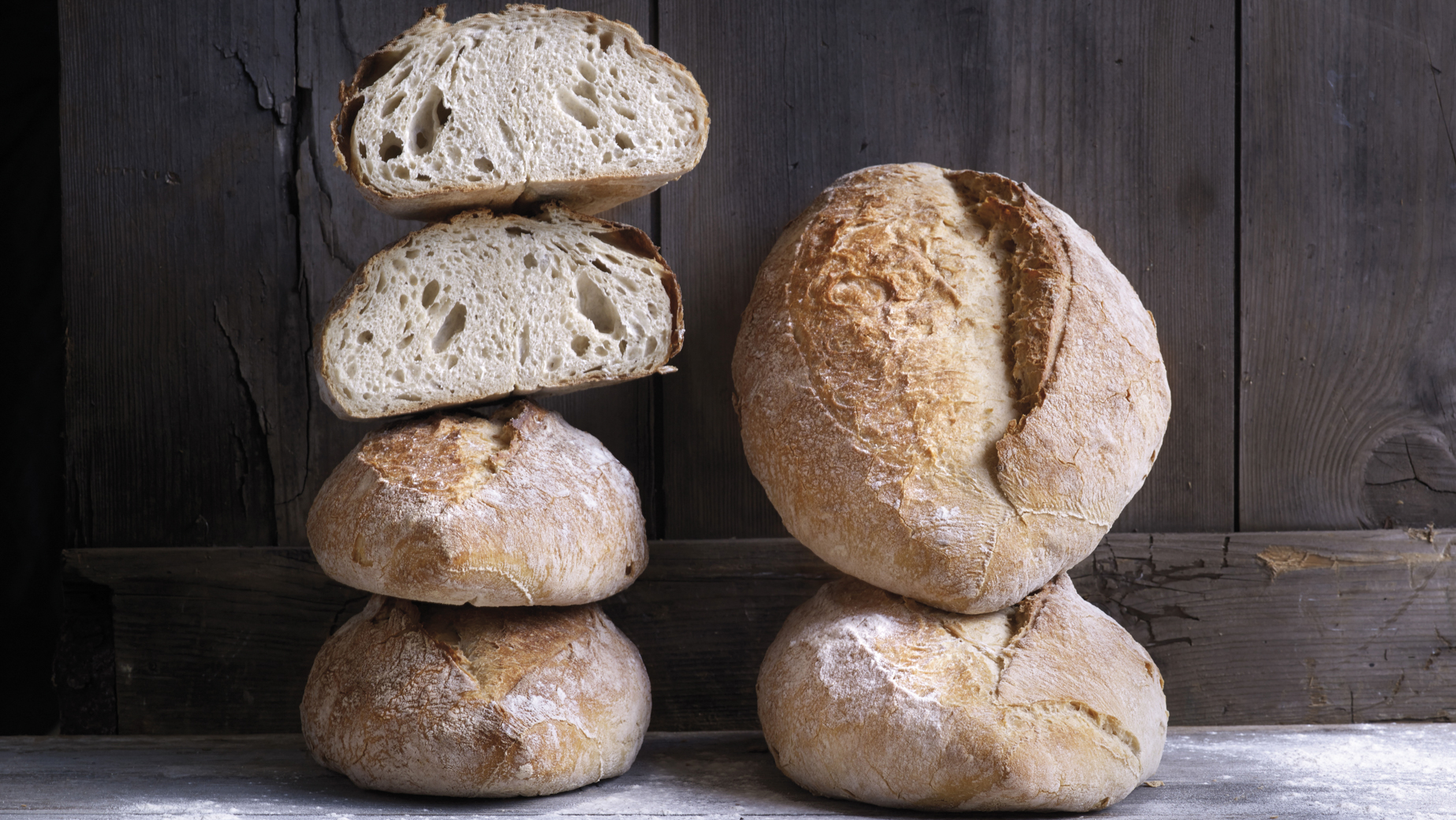 Rustikales weißes Landbrot aus Weizenmehl und Roggen mit einem Roggensauerteig als Starter, mit der Hand gefaltet, mit Mehl bestäubt und im Steinofen gebacken. Ein einzigartiges langsames Mischverfahren und eine längere Ruhezeit garantieren eine bessere Hydratisierung des Teiges. Dies führt zu einem Brot mit einer offenen Struktur, einem milden Sauerteiggeschmack und längerer Frische.