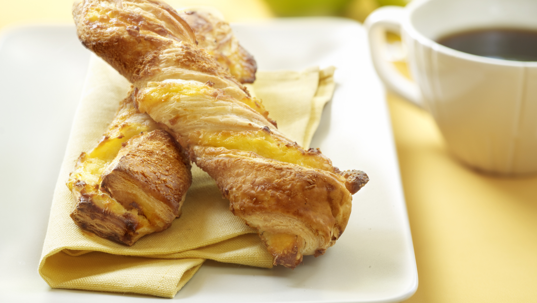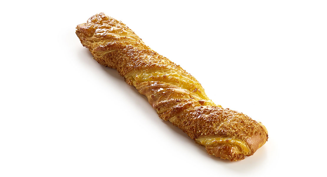 Blätterteig-Twister mit Vanillecreme, angereichert mit Ananas, besprenkelt mit knusprigen Kokosnusssplittern.