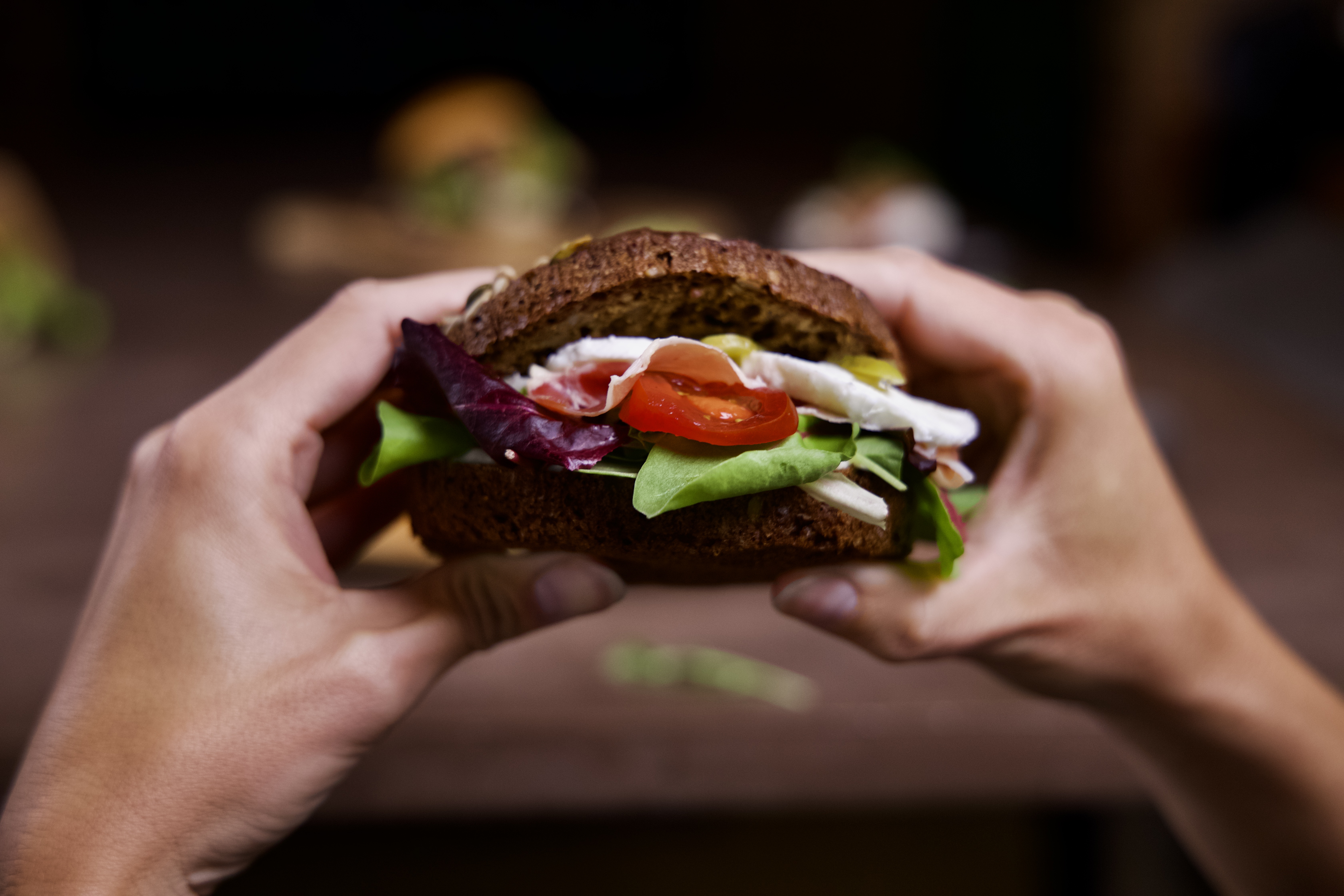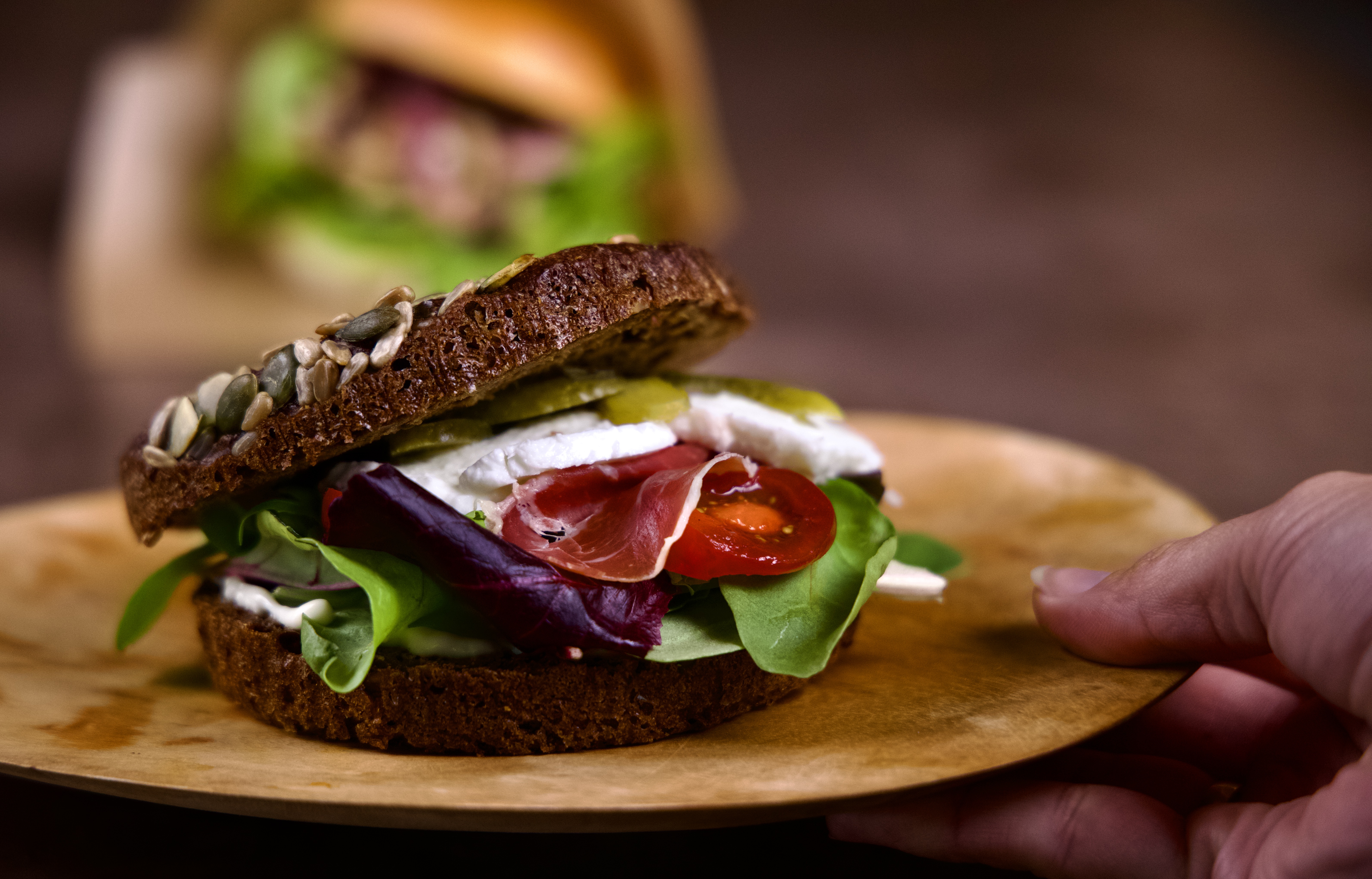 Rugbrøds sandwichbollen er et sjovt fiberrigt alternativ til madpakken eller til det innovative smørrebrødsstykke. Den er perfekt til sulten på farten eller til morgenbordet med grønt og pålæg til.