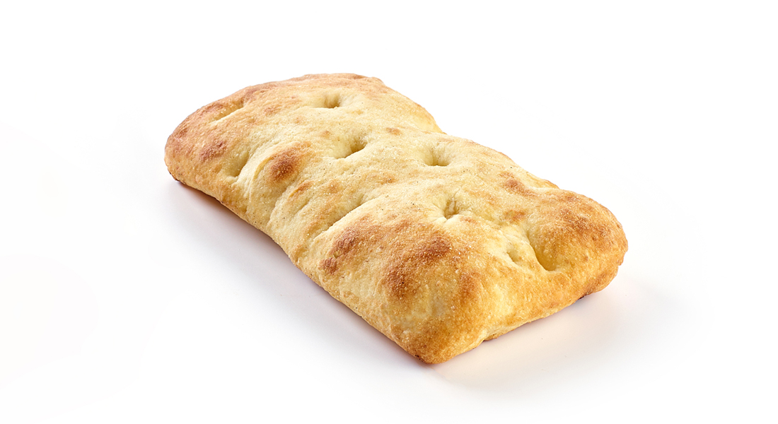 Traditionelt italiensk produceret schiacciata. En stenovnsbagt focaccia-variant af hvedemel med en åben krummestruktur og ekstra jomfruolivenolie. Ideelt som sandwichbrød.