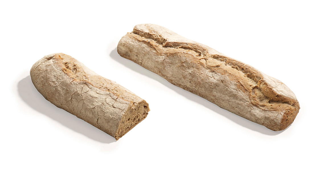 Pan artesanal natural, de trigo (estilo italiano), con semillas de sésamo, linaza y malta de cebada, horneado a la piedra y espolvoreado con harina.