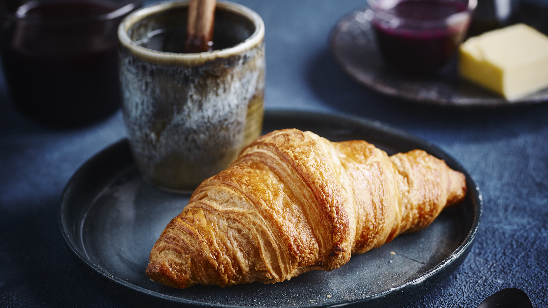 Croissant ecológico elaborado con una fina masa de levadura laminada con mantequilla. Hecho con 24% de mantequilla (porcentaje de la receta total).