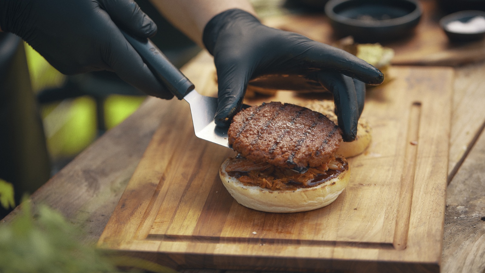 - Monta la hamburguesa y sirve con salsas adicionales, como salsa barbacoa.
