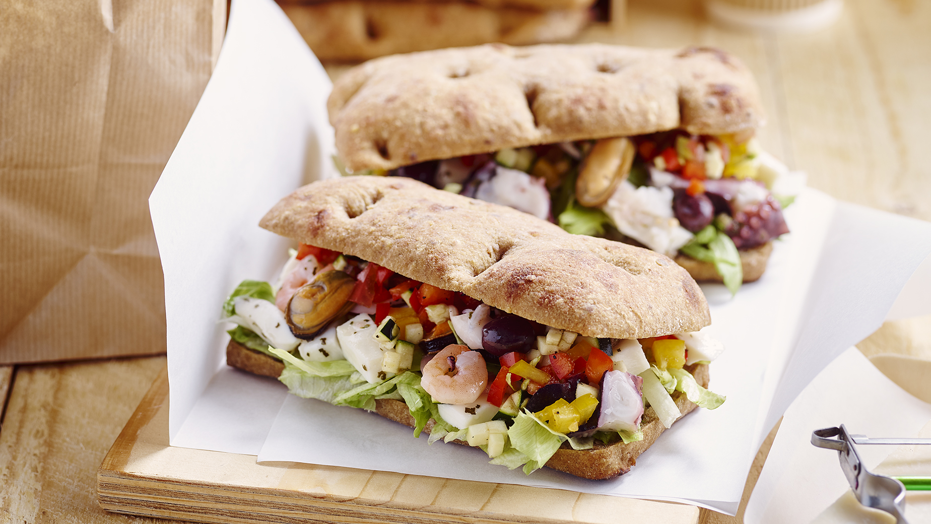 Hagyományos olasz laposkenyér. Laza tésztájú focaccia, teljes kiőrlésű lisztkeverékkel, rozsliszttel, tönkölybúzával, extra szűz olívaolajjal és köleskeverékkel, lenmaggal és napraforgómaggal, kövön sütve. Ideális szendvicsalap.