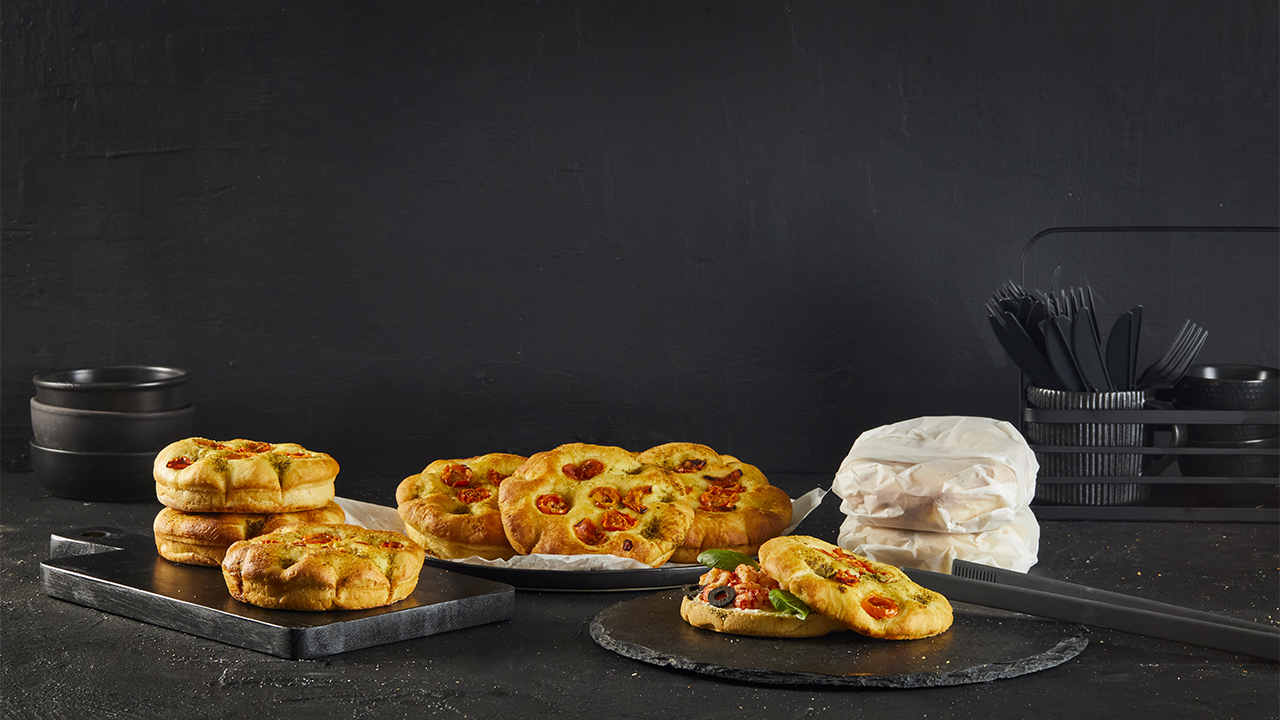 - Meleg szendvicsajánlat: előbb töltsük meg a focacciát, majd 1–2 percre tegyük a sütőbe (nagy sebességű kemence vagy kontaktgrill).