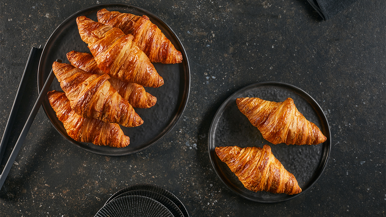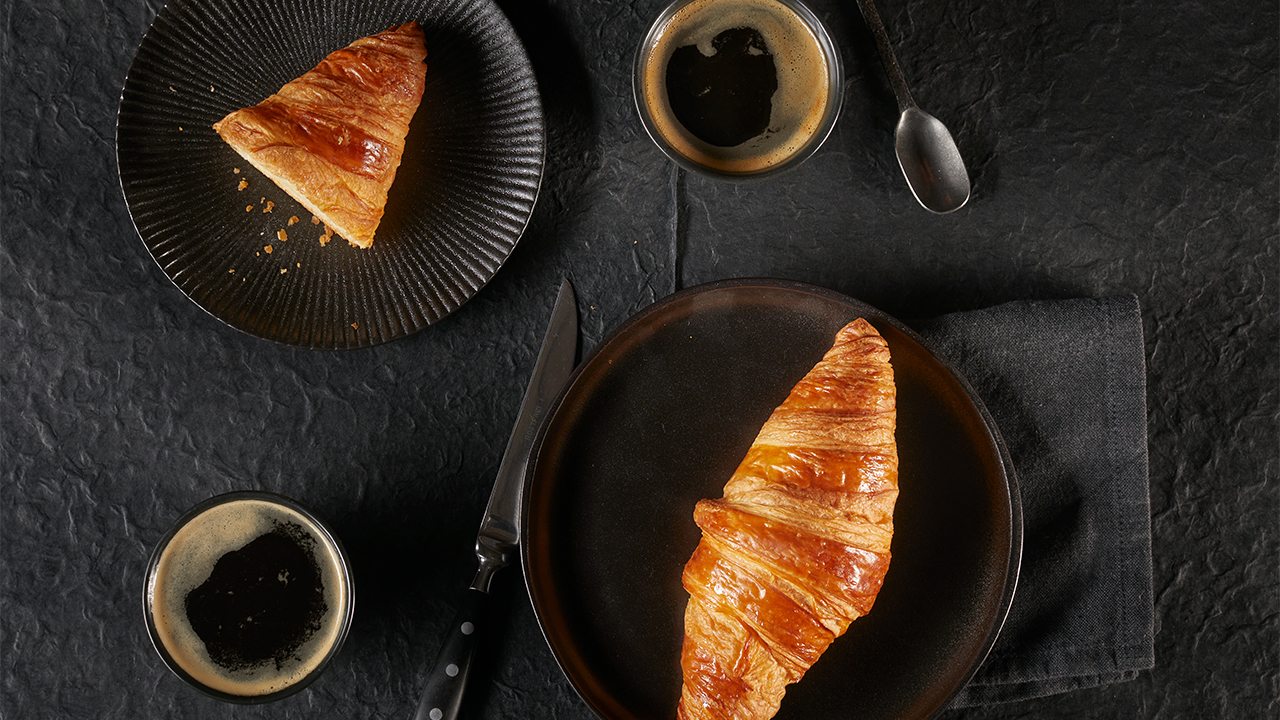 Croissant kiváló minőségű francia vajjal, cukorral és teljes tejporral. A hosszabb pihentetési időt biztosító hagyományos francia gyártási eljárás a friss vaj aromáját kiemelő, finomabb és teljesebb ízt, és szép rétegezést kölcsönöz a péksüteménynek. 23% vajjal készült (a teljes recept százalékarányában).