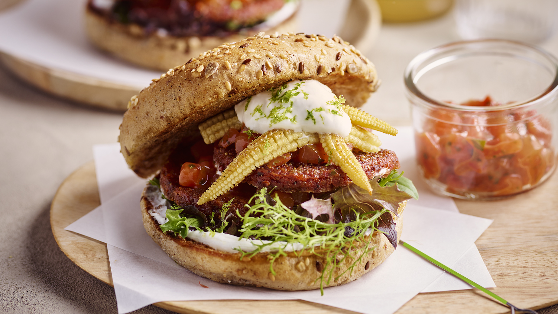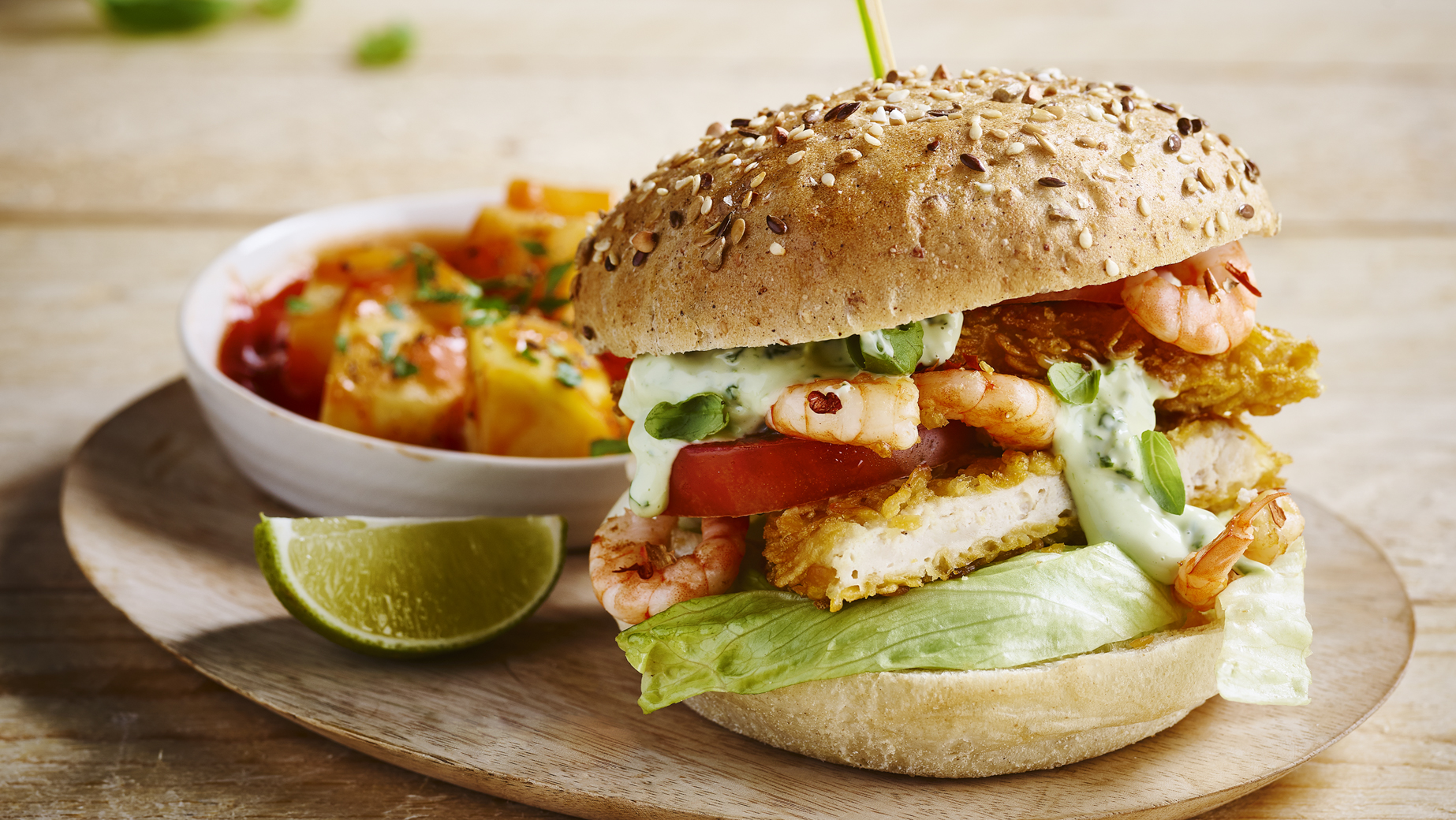 Prémium hamburgerzsemle/szendvicszsemle vékony, ropogós héjjal, és puha, levegős bélzettel. Búzalisztből, egy kis rozskovásszal készült, pirított rozzsal, lenmaggal és olívaolajjal dúsítva. Hajdinával, arany és barna lenmaggal, napraforgó- és szezámmaggal díszítve, előre szeletelve.