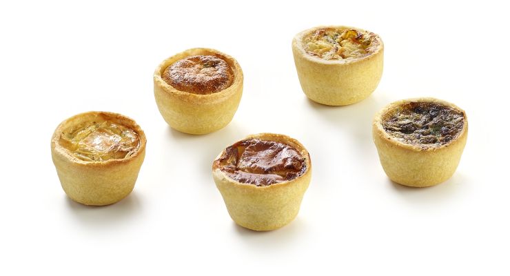 Kolekce slaných mini snacků, které jsou tvořeny křehkými košíčky s 5 různými náplněmi: 5x losos-kopr, 5x květák-brokolice, 5x rajče-kozí sýr-bazalka, 5x tartiflette, 5x žampión-česnek-petržel.