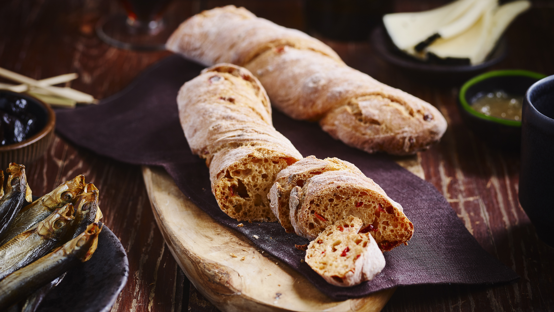 Působivá řemeslná střední bageta z pšeničné mouky s trochou tekutého žitného kvasu obohacená rajčaty, chilli papričkami a špetkou tabasca. Delší doba kynutí a odpočívání má za následek skutečné řemeslné dílo s otevřenou střídou a autentickou chutí dávných dob. Ručně kroucená a pečená v kamenné peci.