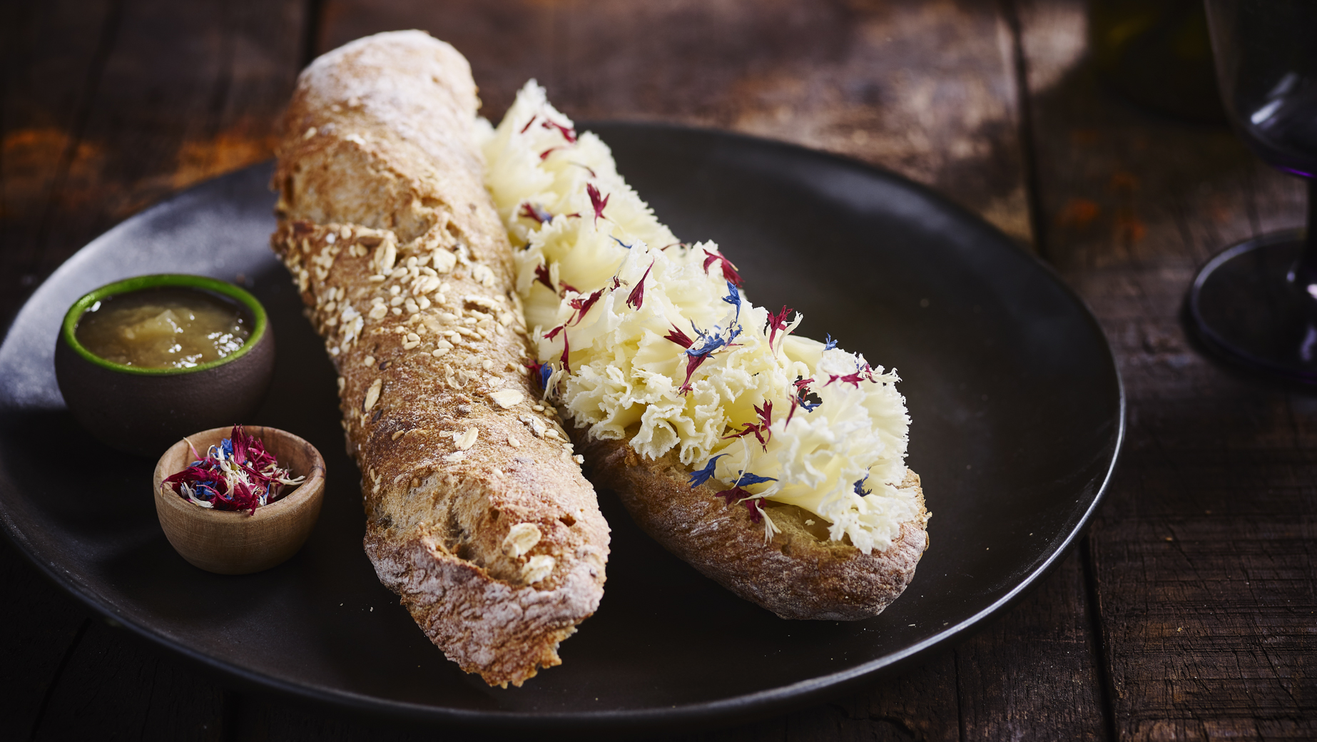 Působivá řemeslná vícezrnná střední bageta z pšeničné mouky s ječným sladem a trochou tekutého žitného kvasu. Obohacená a ozdobená lněnými, sezamovými a slunečnicovými semínky a ovesnými vločkami. Delší doba kynutí a odpočívání má za následek skutečné řemeslné dílo s otevřenou střídou a autentickou chutí dávných dob. Ručně kroucená a pečená v kamenné peci.