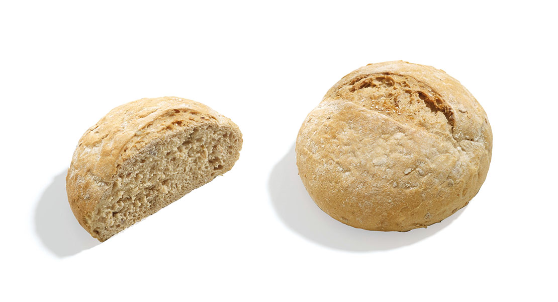 Mehrkorn-Brötchen aus Weizen mit Dinkel und Vollkornweizenmehl, Sonnenblumenkernen und Sesam.