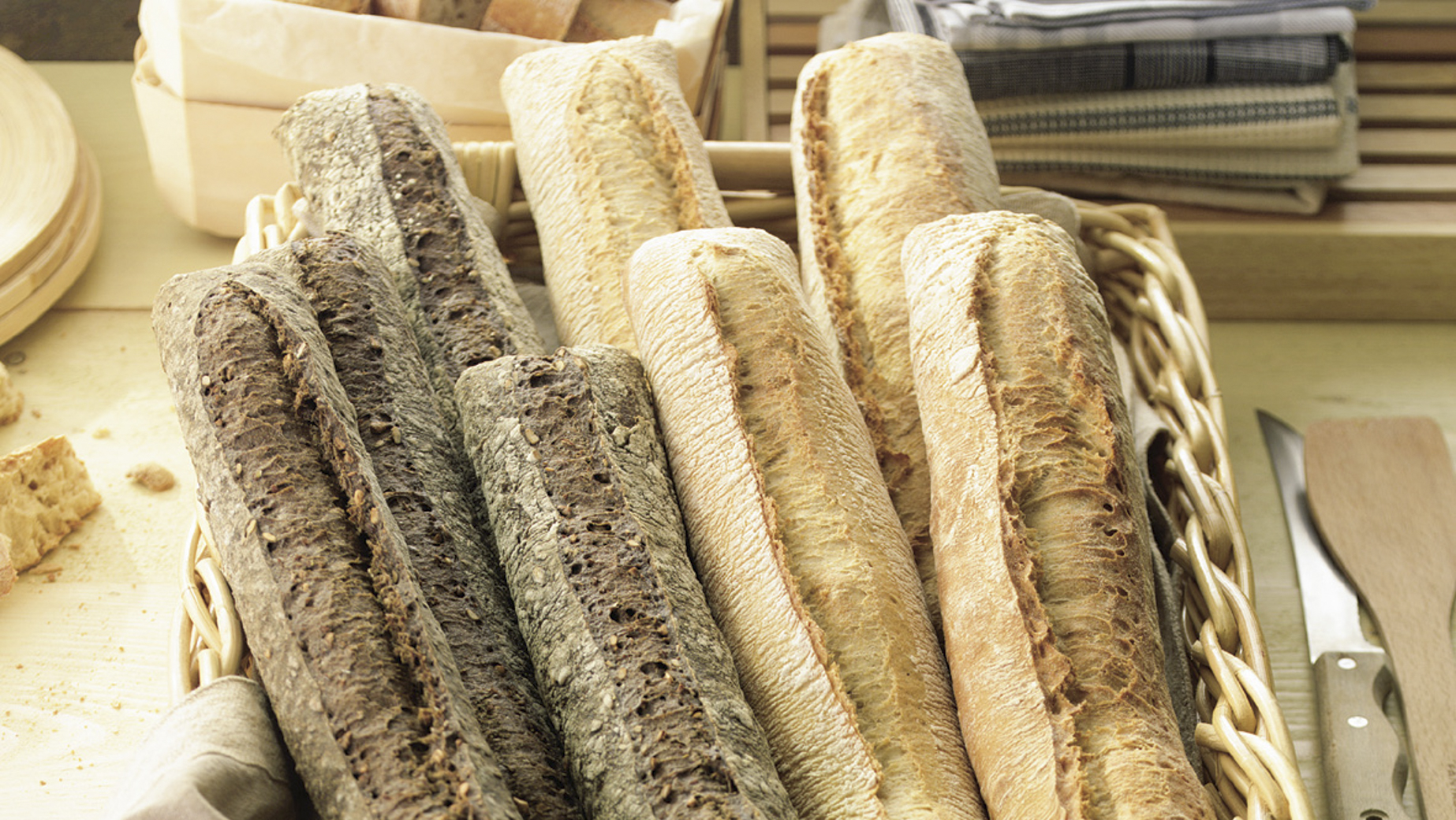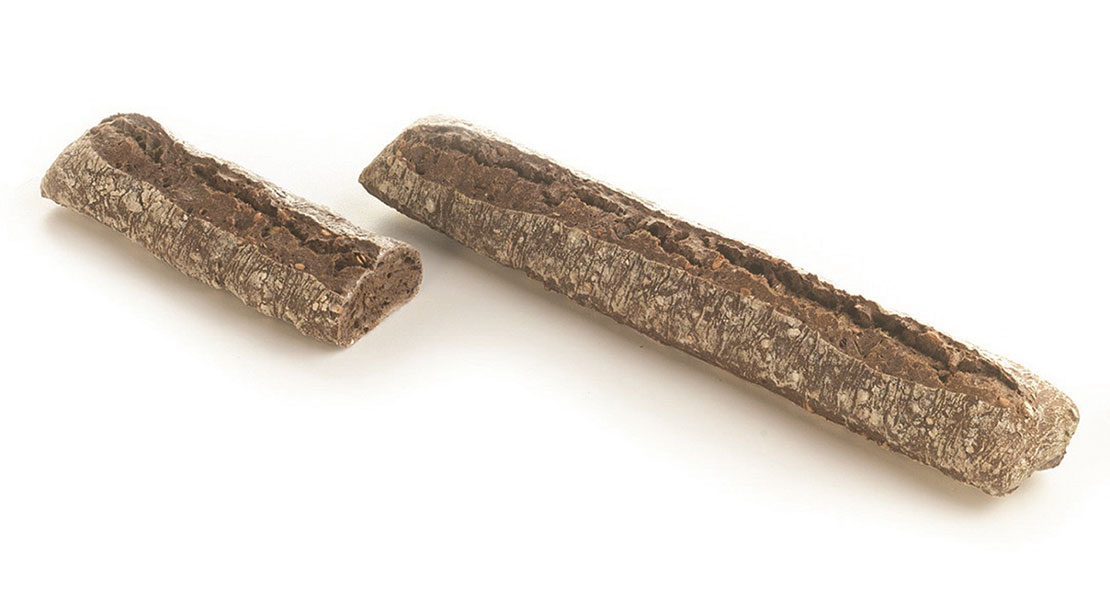 Traditionelles, dunkles und reichhaltiges Baguettes aus gemischtem Teig von Weizen, Roggen und Malz. Angereichert mit Bruchroggen, Sonnenblumenkernen und braunen Leinsamen.