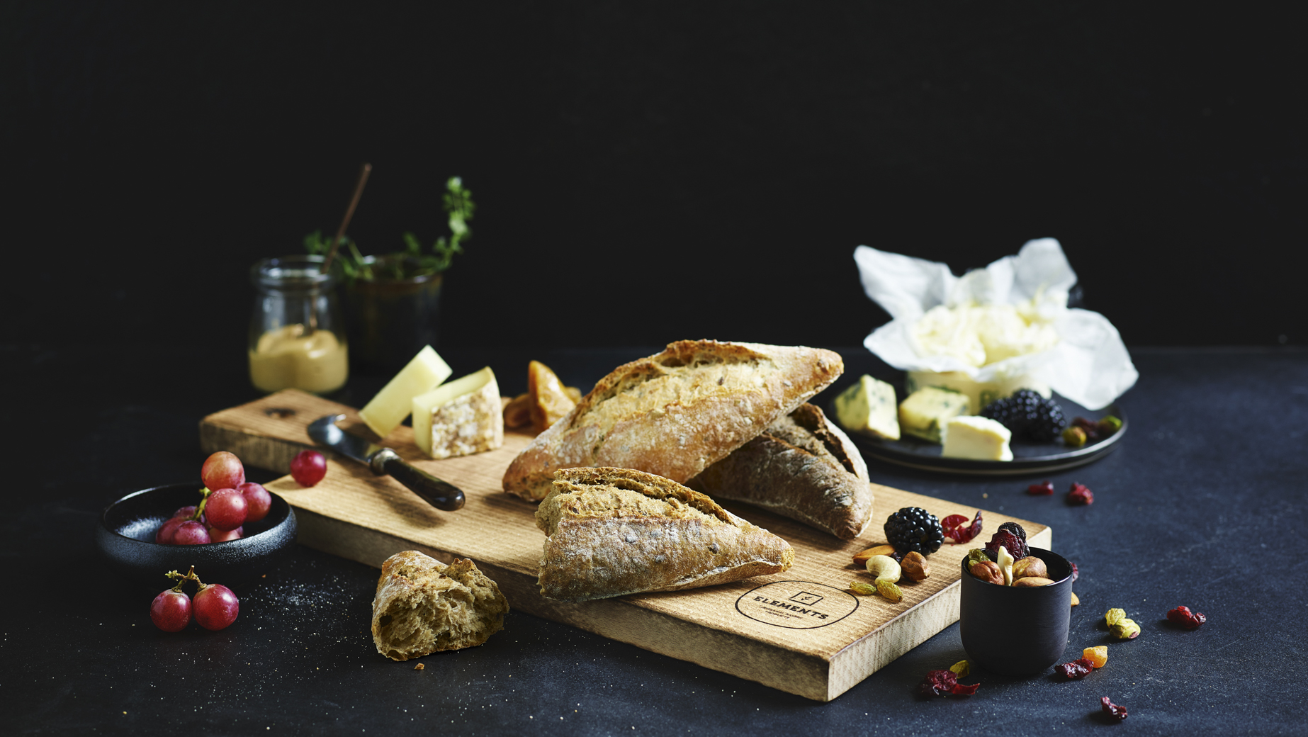 Sortiment von rustikalen, elegant geformten, reichhaltigen Mehrkornbrötchen, auf Stein gebacken: 20 Brötchen mit Sonnenblumenkernen, 20 Mehrkornbrötchen, 20 Müller-Brötchen.