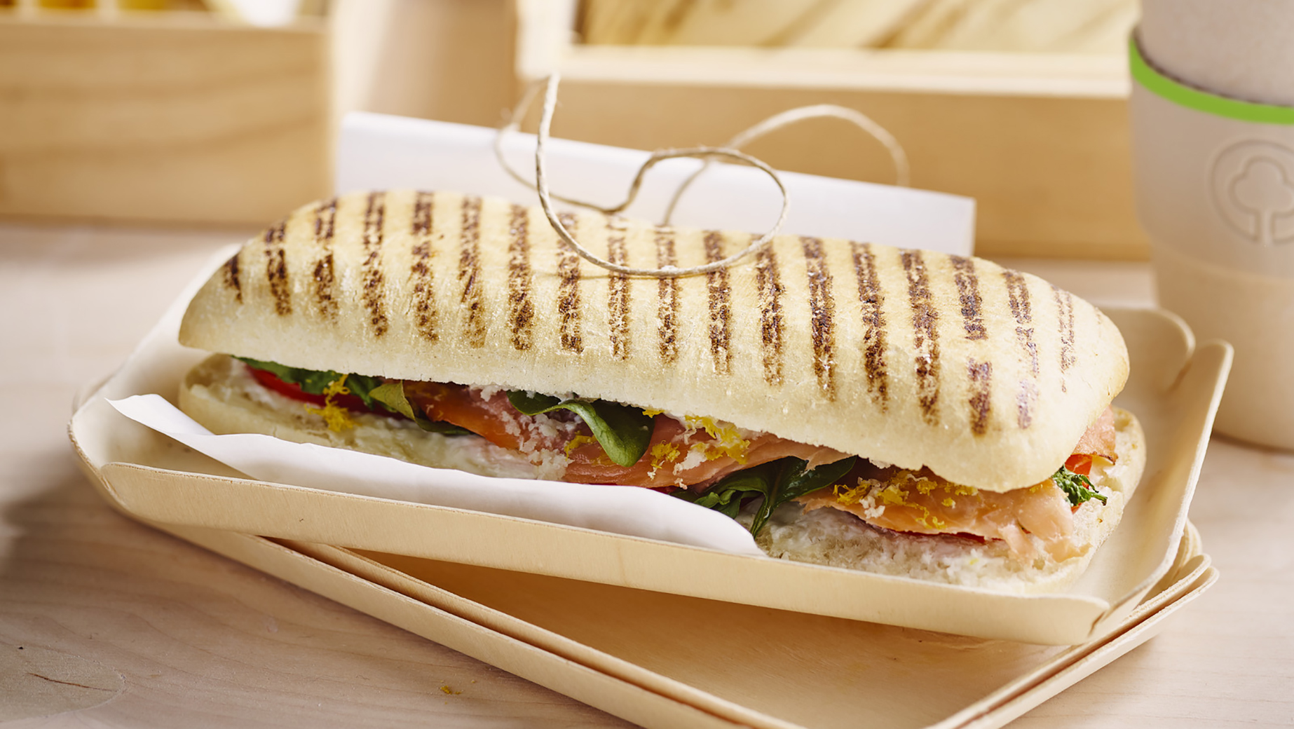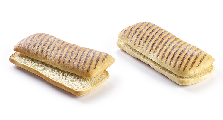 Als vollständig vorgebackenes Produkt können Sie es leicht auftauen, füllen und verpacken (Flowpack). Zubereitet können Sie sie in der Kühltheke lagern. Bei Bestellung können Sie die vorbereiteten Sandwiches kalt (zur Erhitzung zu Hause oder im Büro) oder heiß, je nach Kundenwahl, anbieten. Das Grillmuster verleiht dem Brot das Aussehen eines frisch gegrillten Ciabatta.