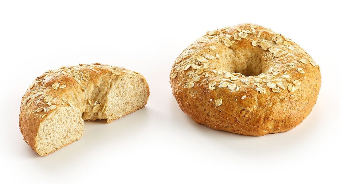 Gedämpfter Mehrkornbagel, angereichert mit Sonnenblumenkernen und garniert mit Haferflocken.