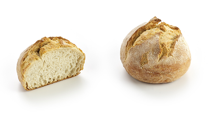 Weißes Weizenbrötchen mit einer ausdrucksvollen, berstenden Kruste und einer saftigen, luftigen Krume. Angereichert mit Kartoffelflocken und Joghurt als geheimer Zutat für eine anhaltende sensorische Frische.