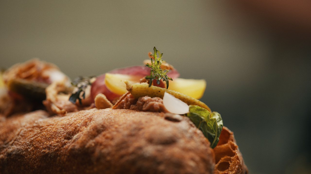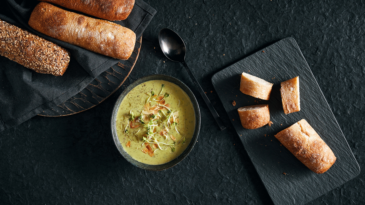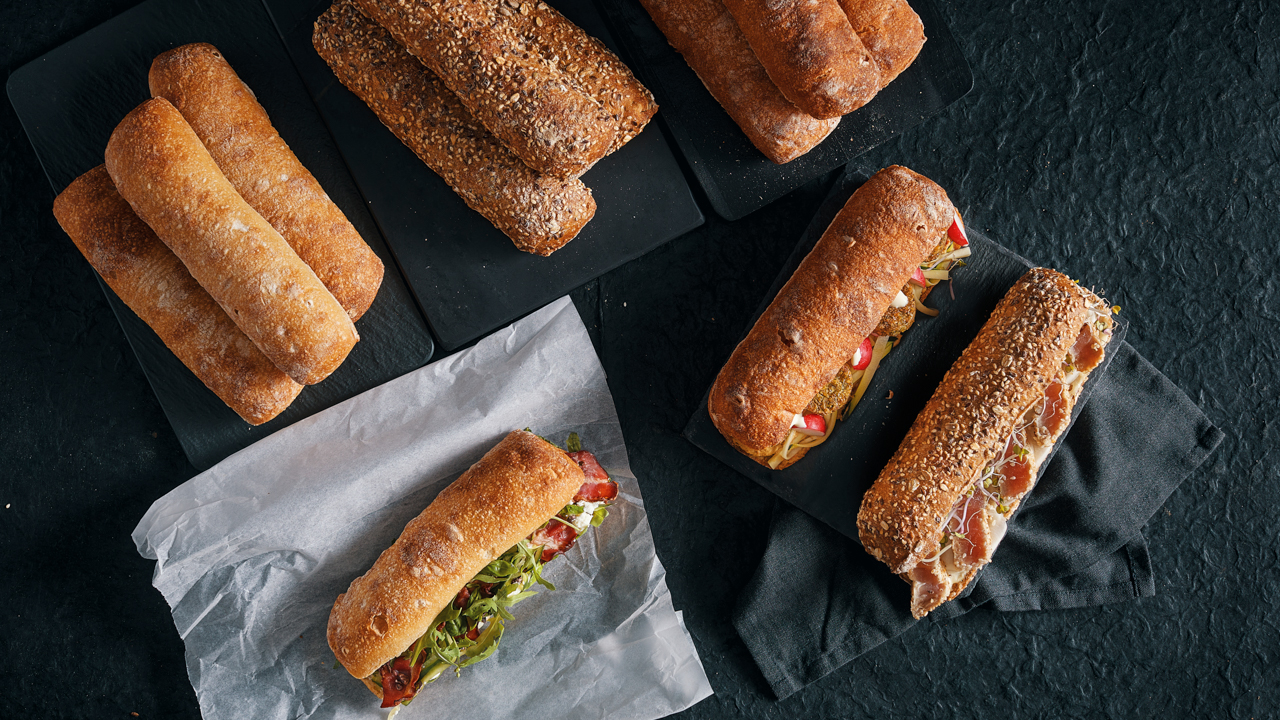 Media baguette artesana de harina de trigo y masa madre de centeno líquida, enriquecida con pimiento, tomate seco, chile y un toque de tabasco. Los tiempos prolongados de reposo y maduración (2 x 12 h) aportan aún más sabor a la miga húmeda y semiabierta. Práctica, de forma rectangular.