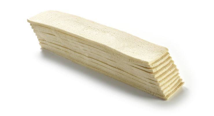 Pan de molde blanco, cortado horizontalmente y sin corteza; 10 rebanadas de 45 x 10 x 0,85 cm. Ideal para sándwiches, canapés y tostadas.
