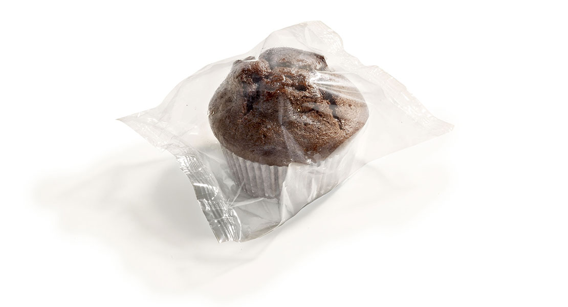 Suave muffin de chocolate con muchos trocitos de chocolate negro. Envuelto individualmente para llevar y para mayor frescura.