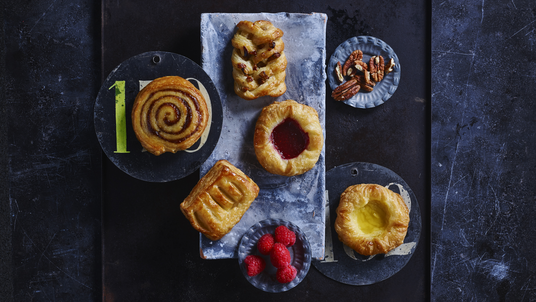 En los países anglosajones, se utiliza el término «Danish pastries» para denominar a las pastas elaboradas con masa laminada fermentada con levadura, adaptadas por los panaderos daneses a sus propios gustos y tradiciones. Por ejemplo, al aumentar la cantidad de huevo y grasa (y azúcar) en las clásicas láminas ultrafinas, aparece una corteza marrón y hojaldrada. Las pastas danesas suelen venir con sus típicas formas: trenza, corona, remolino, etc., y tienen una gama de sabores muy nórdicos: crema pastelera, canela, manzana, frutos secos...